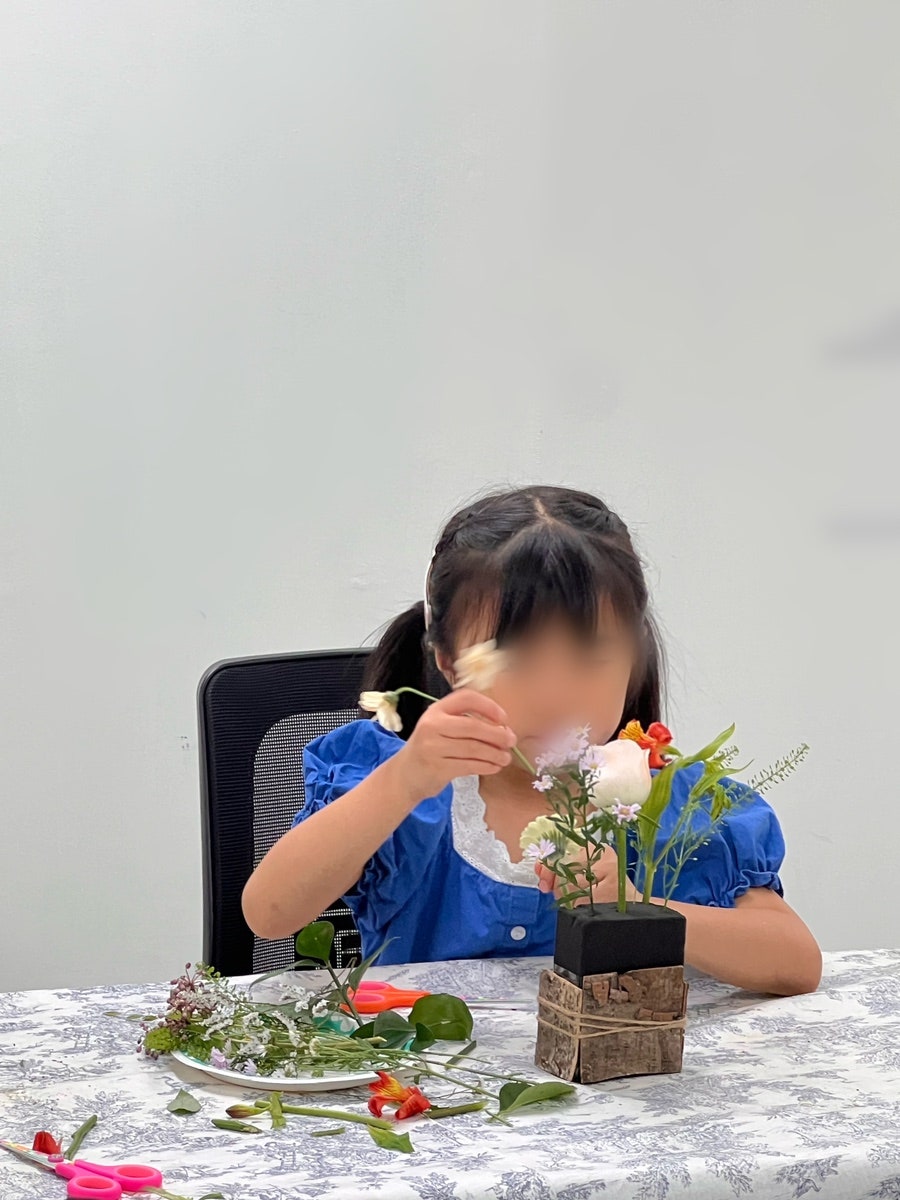 꽃 하나의 특징과 장점을 스스로 찾아보고 다같이 이야기하면서 탐색하는 시간을 가지다보면 꽃을 더 소중하게 다루게 되고, 집중하면서 꽃꽂이를 할 수 있는 시간을 가지게 됩니다.