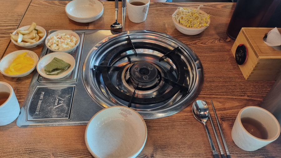 공간은 조금은 아담한 편이었고, 4인 테이블 약 6개 정도로 있었어요. 저는 어른들 모시고 성인 5인 단체로 이용했는데요. 테이블 2개를 붙여도 불편함 없이 이용했습니다.